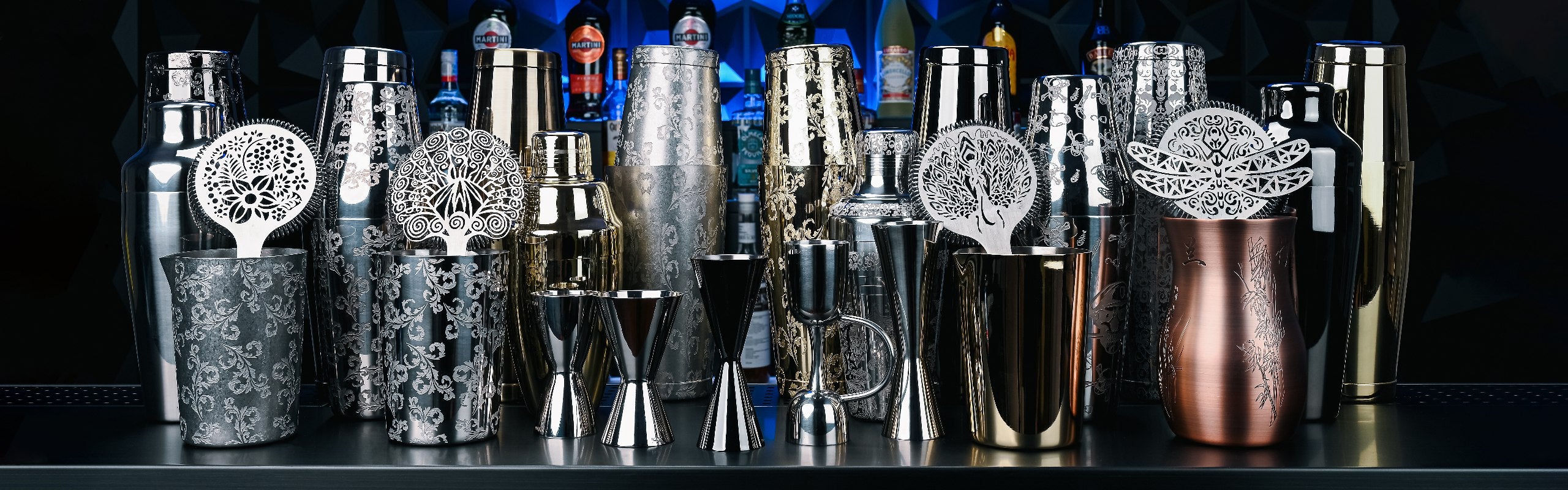 Extensive selection of cocktail glasses